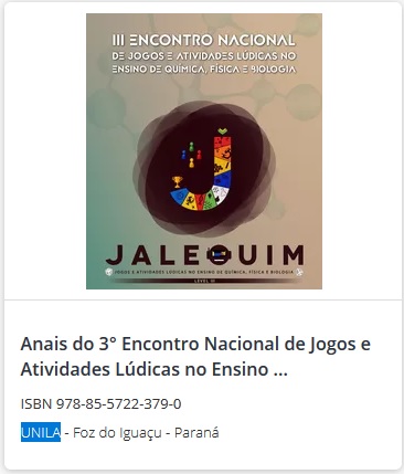 Anais do 3° Encontro Nacional de Jogos e Atividades Lúdicas no Ensino de Química, Física e Biologia (Jalequim - Level III) - Núcleo de Desenvolvimento de Pesquisas em Ensino de Química/Ciências da UNILA (NuDDEQ)